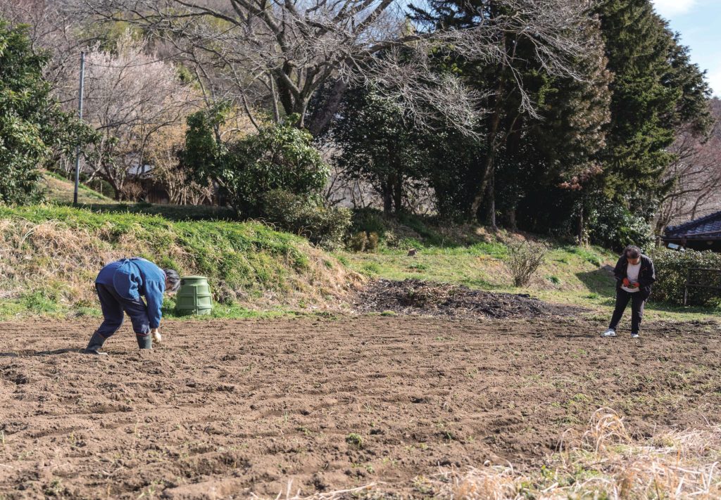 お店の隣の畑で玉ねぎの苗を植えています。
