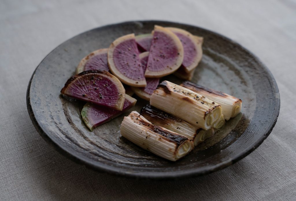 ① 長ネギは5センチくらい、紅芯大根は5ミリの銀杏切りか半月切りにする。